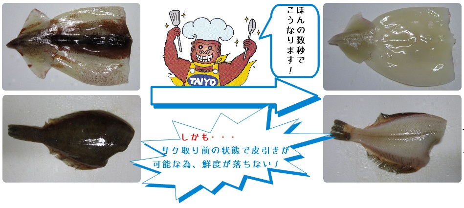 処理が大変な魚介類の皮が一瞬でむける!